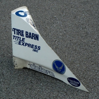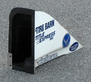 Very cool Indy Car Dallara flugel wing rear wheel kick. To add this neat piece to your Indy Car memorabilia collection contact john@500legends.com. $75